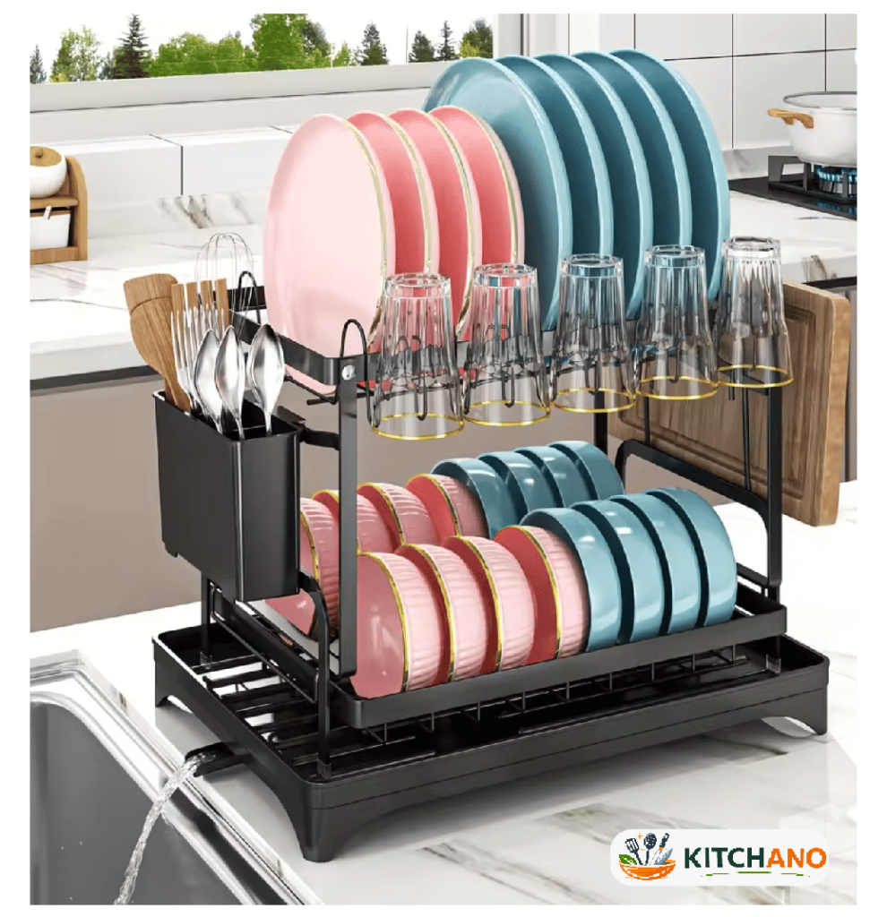 Metal Kitchen Dish Drying Rack – Bowl Drainer with Cutlery Holder